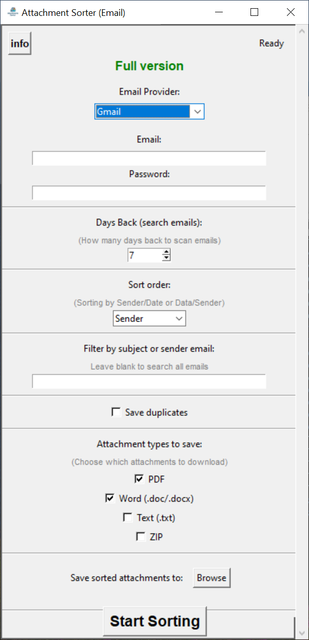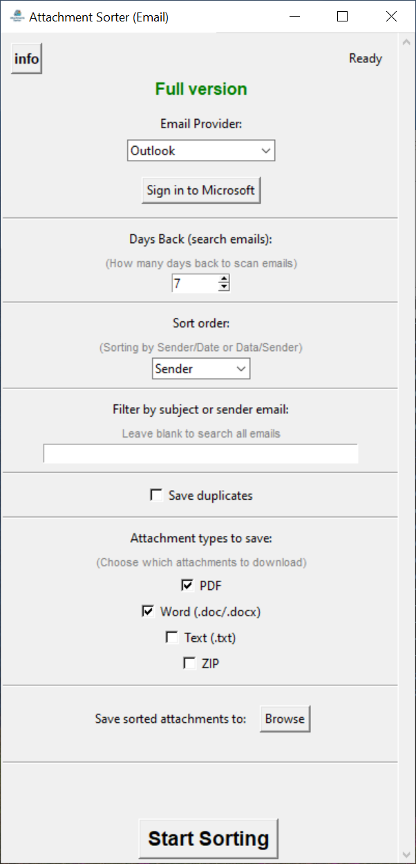 This is a fully featured application available with a 3-month access plan. It enables users to automatically download and organize email attachments with powerful customization options. Features include adjustable look-back periods, sorting by sender or date, keyword filtering by subject or sender, and support for multiple file types such as PDFs, Word documents, text files, and more — all designed to streamline your workflow from day one.